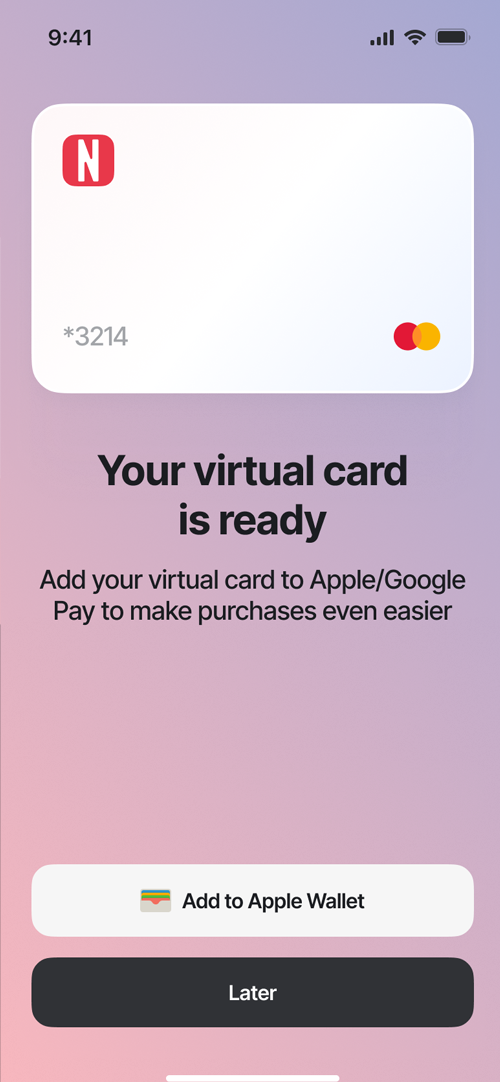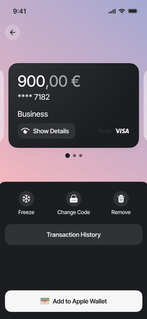 Manage your cards in real time — freeze or unfreeze cards, view card details, track transactions, and pay by card wherever Mastercard is accepted or add your card to Apple Pay or Google Pay for contactless payments.